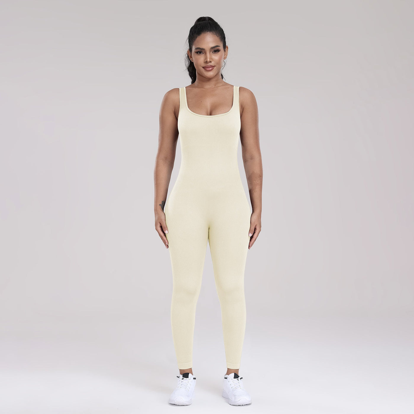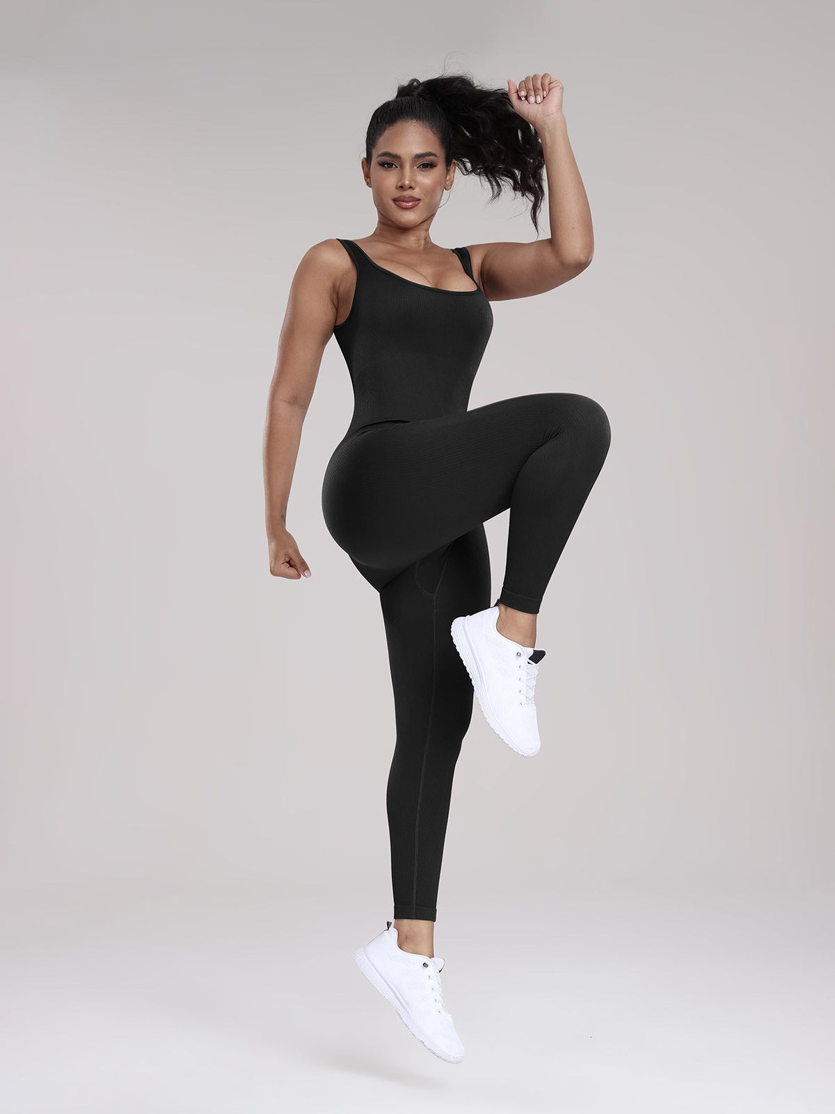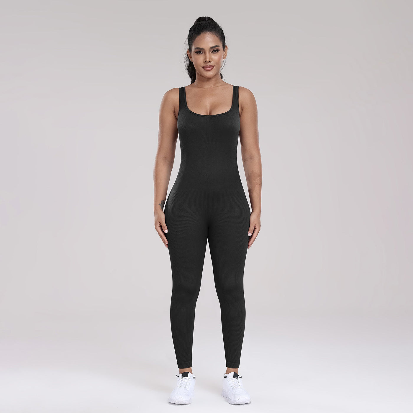 Seamless Yoga Ribbed One-Piece Fitness Outdoor Sports Long Pants with Backless One-Piece Top for Women - Black / S