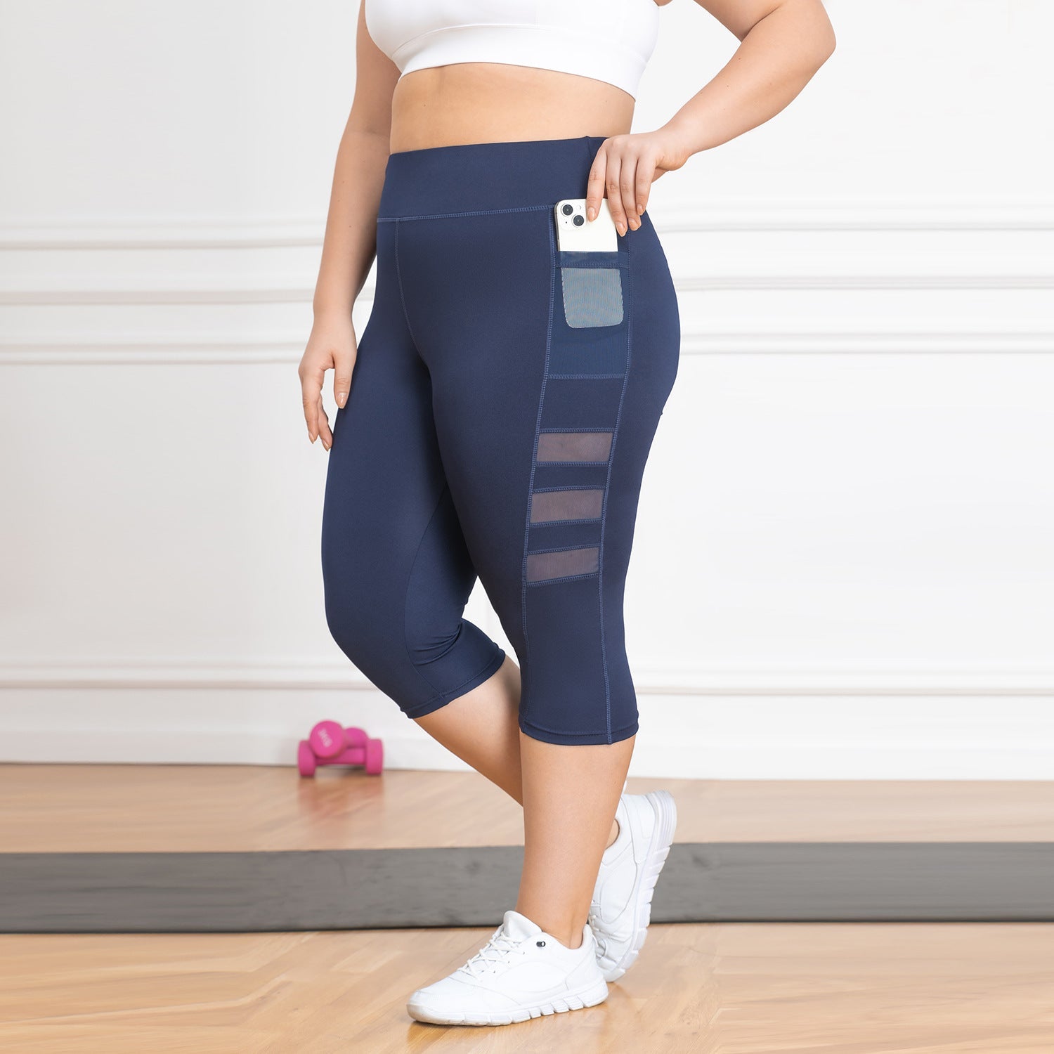High-waisted butt-lifting yoga pants for women with mesh Roman pockets, running pants, outdoor plus-size 7/8-length patchwork athletic pants - Black / XL